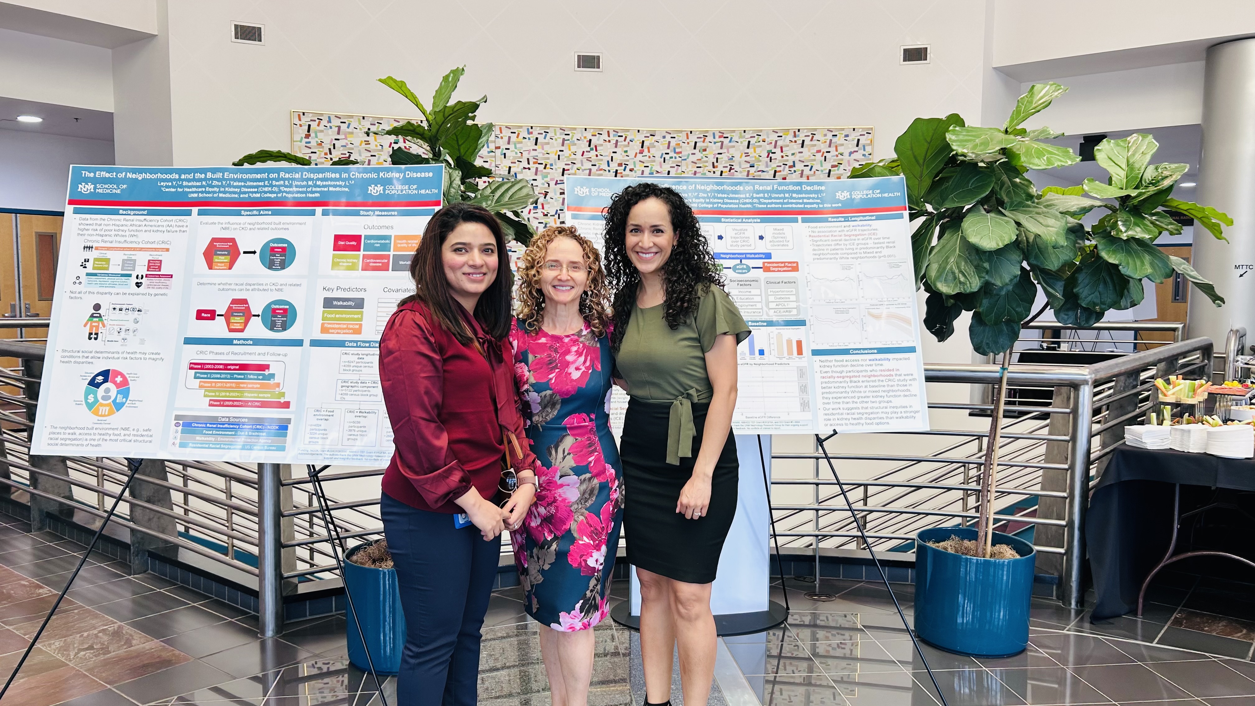 Sr Statistician, Naheed, CHEK-D Director, Dr. Larissa Myaskovsky, and Biostatistician, Yuri Levya, during poster presentations at the Annual DCI Nephrology Research Symposium (2025)