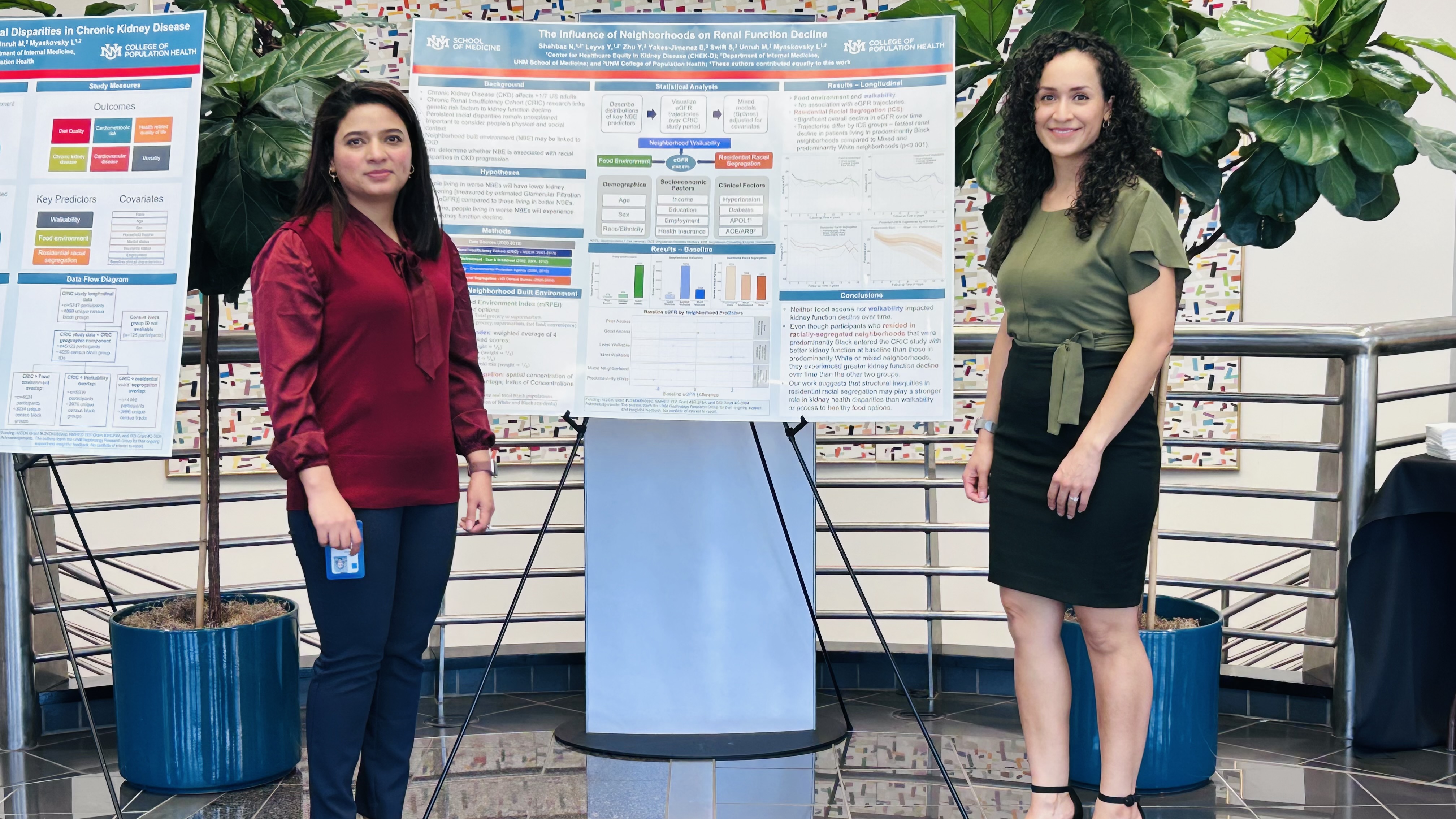 Sr Statistician, Naheed, and CHEK-D Biostatistician, Yuri Levya, during poster presentations at the Annual DCI Nephrology Research Symposium (2025)