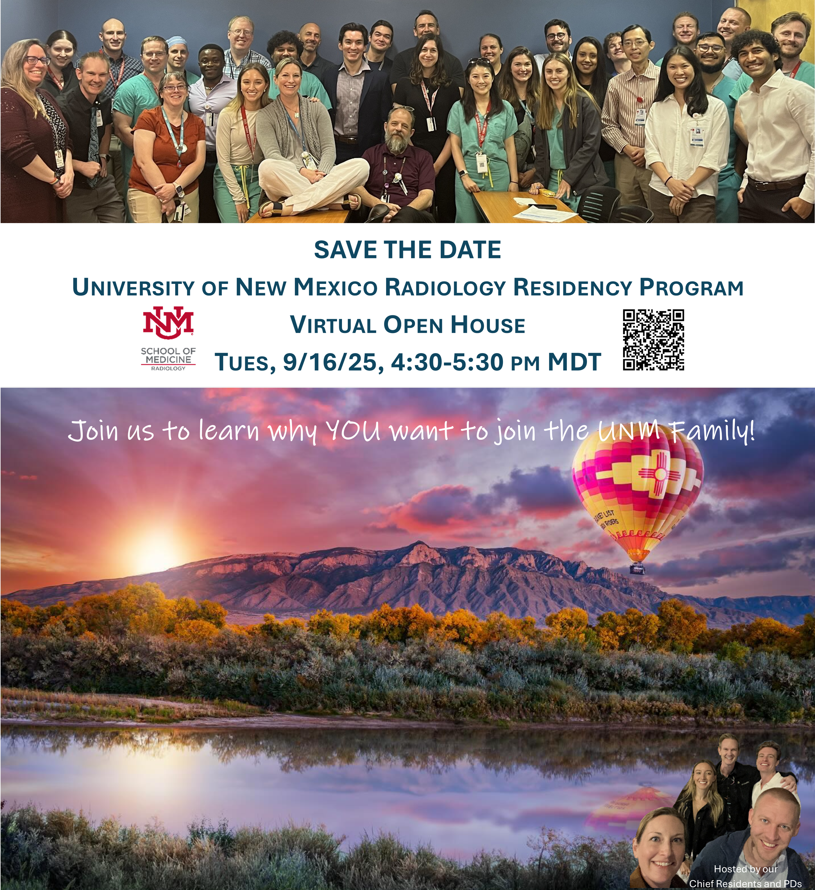 Please visit the Department of Radiology Diagnostic Radiology web site which contains in-depth details about our residency program, department, current residents and faculty, and the greater Albuquerque area.